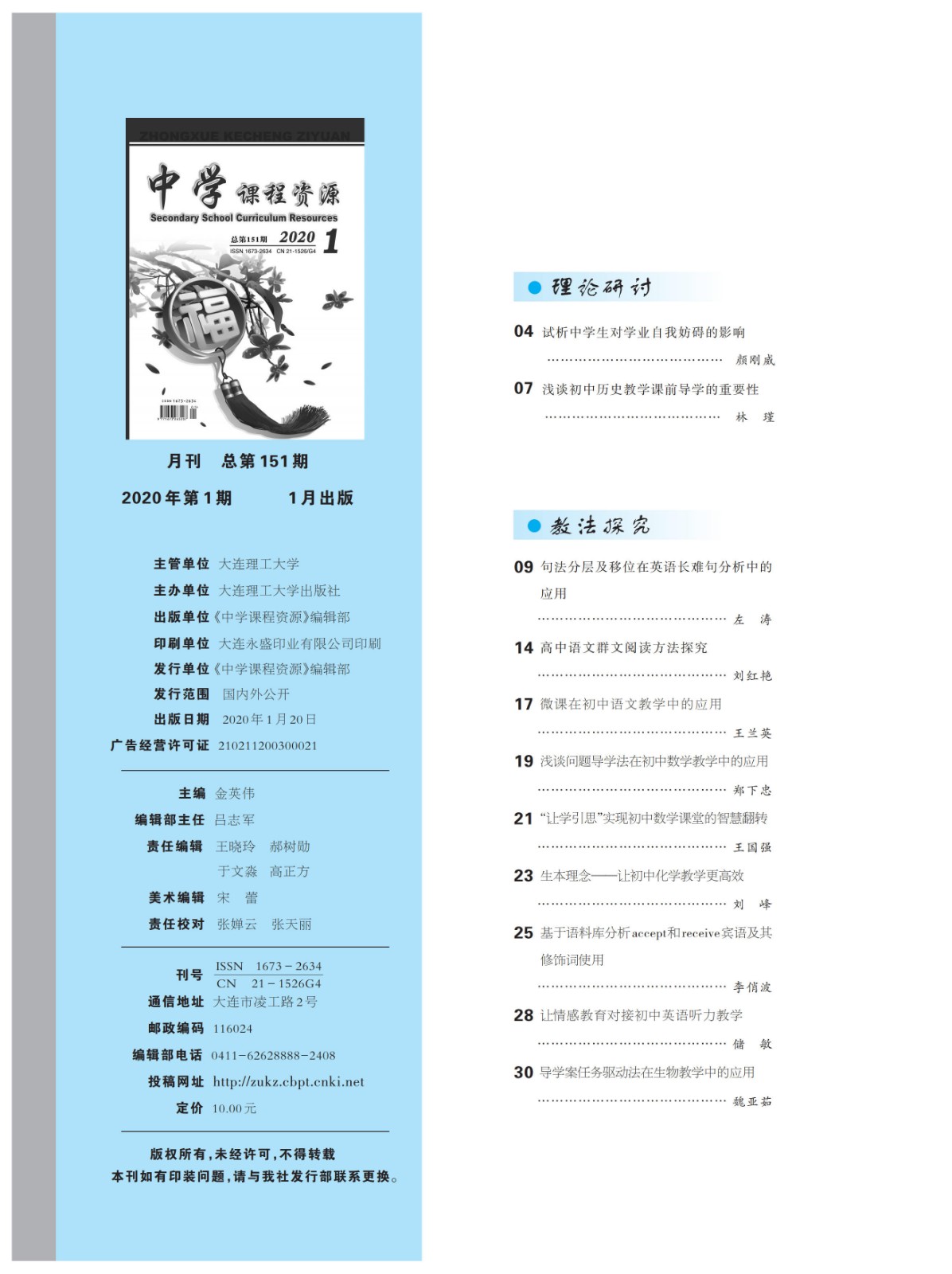 《中学课程资源》2020年1期