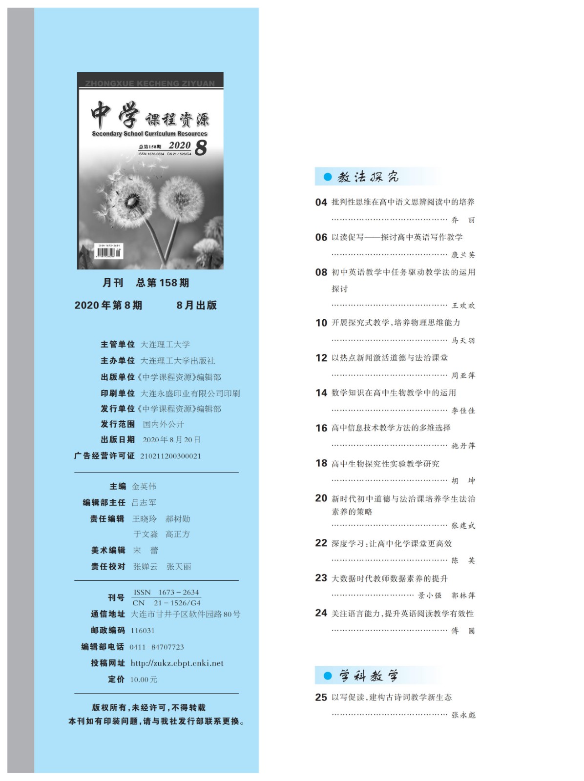 《中学课程资源》2020年8期