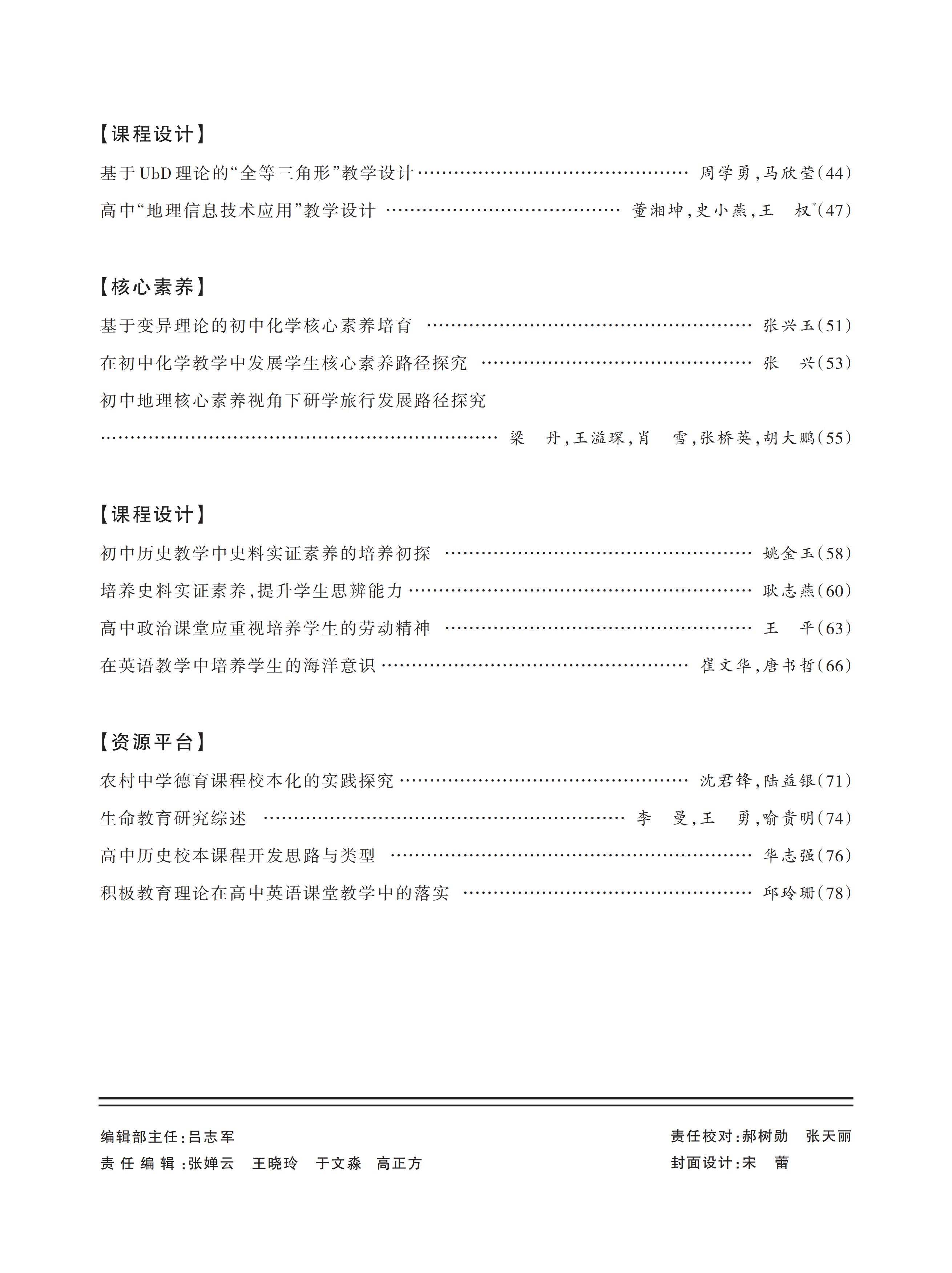 本刊主要登载教育教学改革研究的新成果、新方法,力求创新性、前瞻性、实践性,涉及初高中道德与法治(思想政治)、语文、数学、英语、物理、化学、生物学、历史、地理、信息科技、综合实践活动、体育与健康、艺术、劳动等学科,课程资源丰富、广泛。