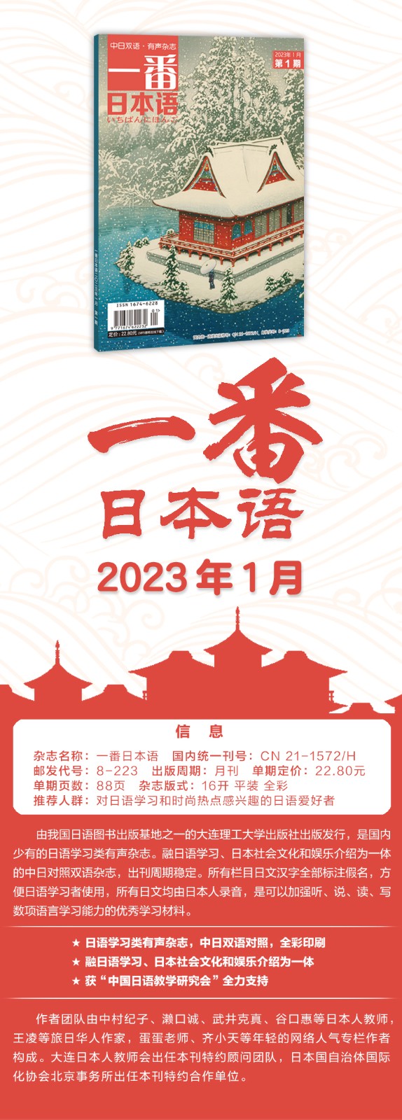 2023年《一番日本语》进行了改版,增加了人文万象、童话经典、综艺大观、都市快报等专栏,希望能带给大家耳目一新的感觉。