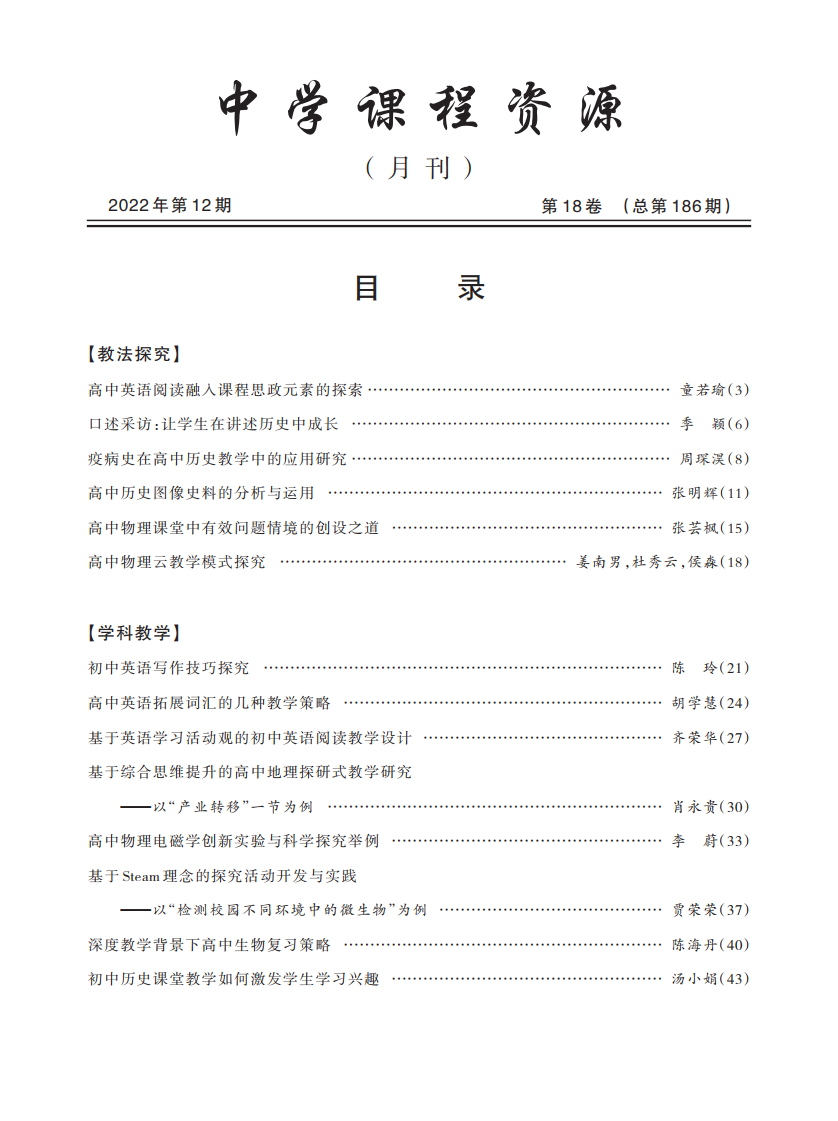 《中学课程资源》2022年12期